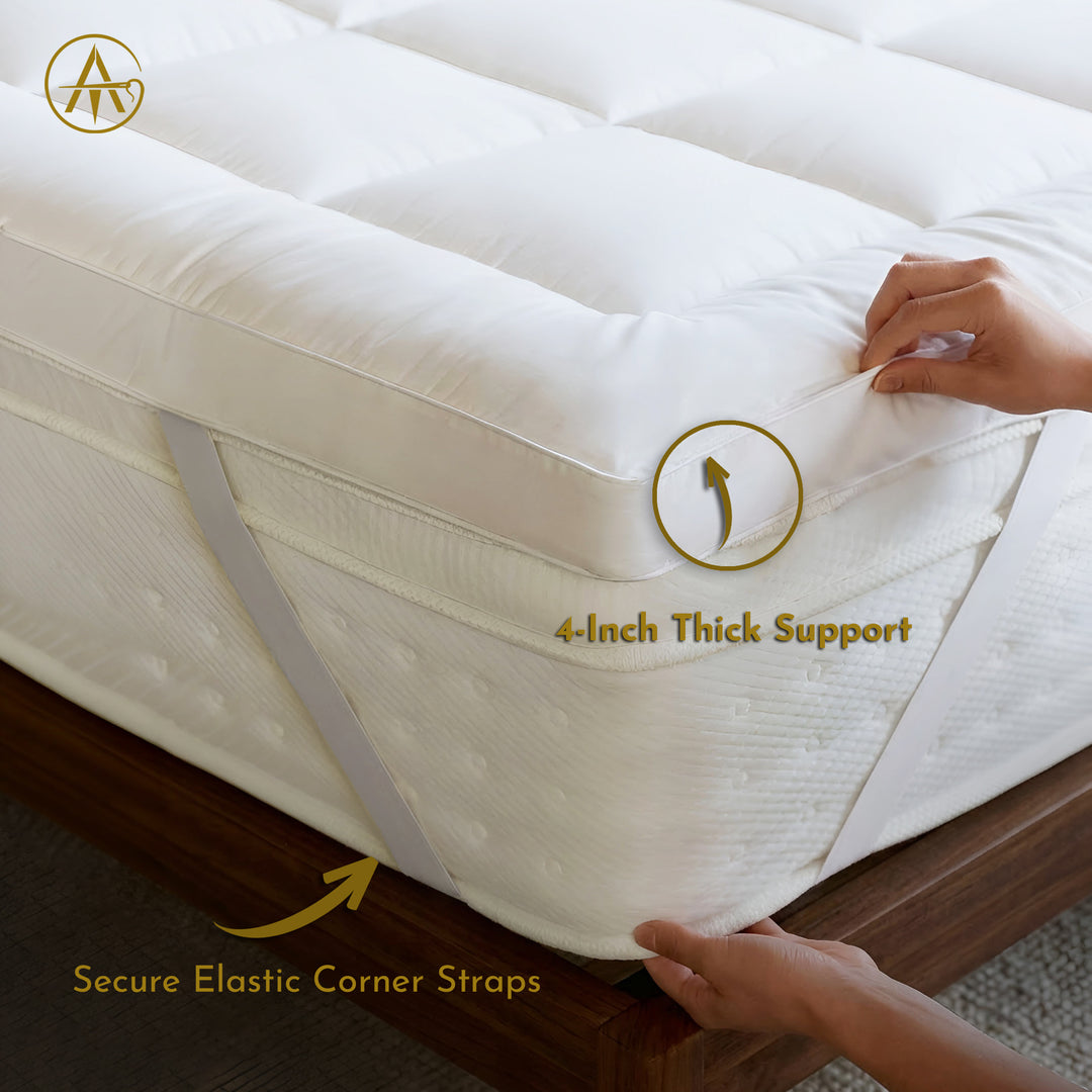 Crafted with 4-inch thickness to enhance your mattress, while elastic corner straps keep the topper perfectly positioned.
