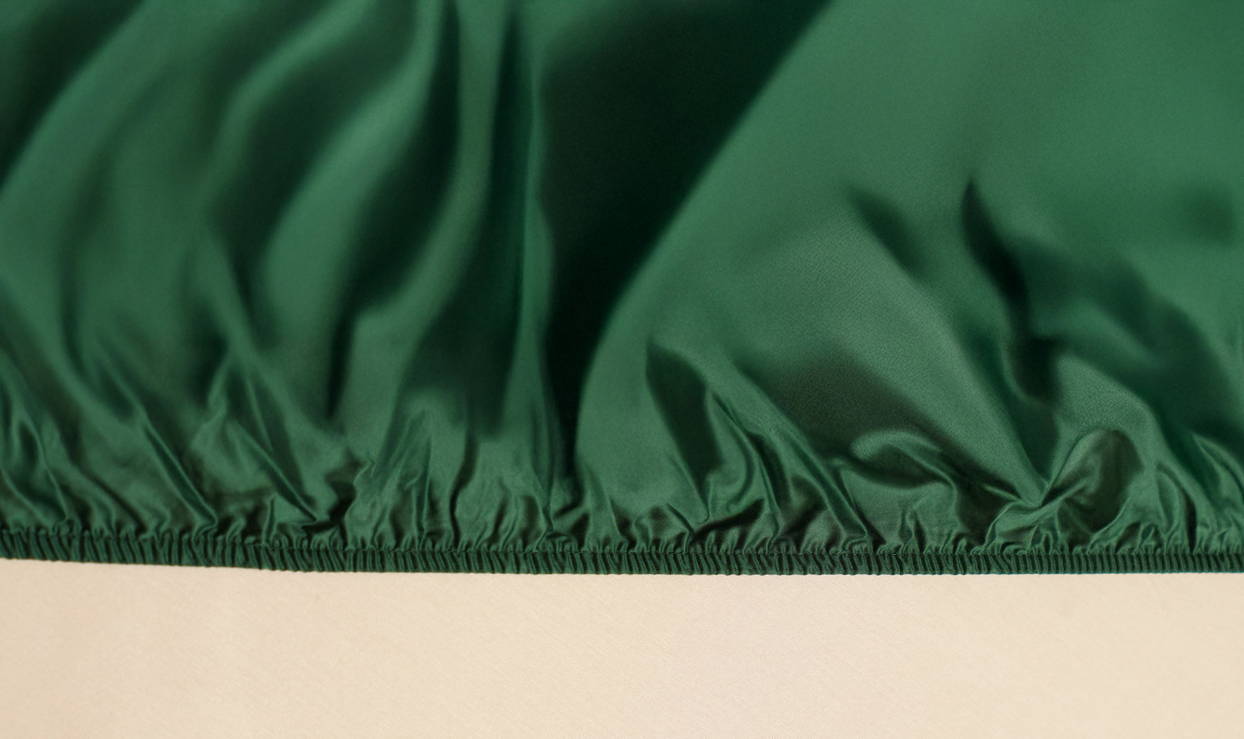 Close-up of green fabric with a beige background